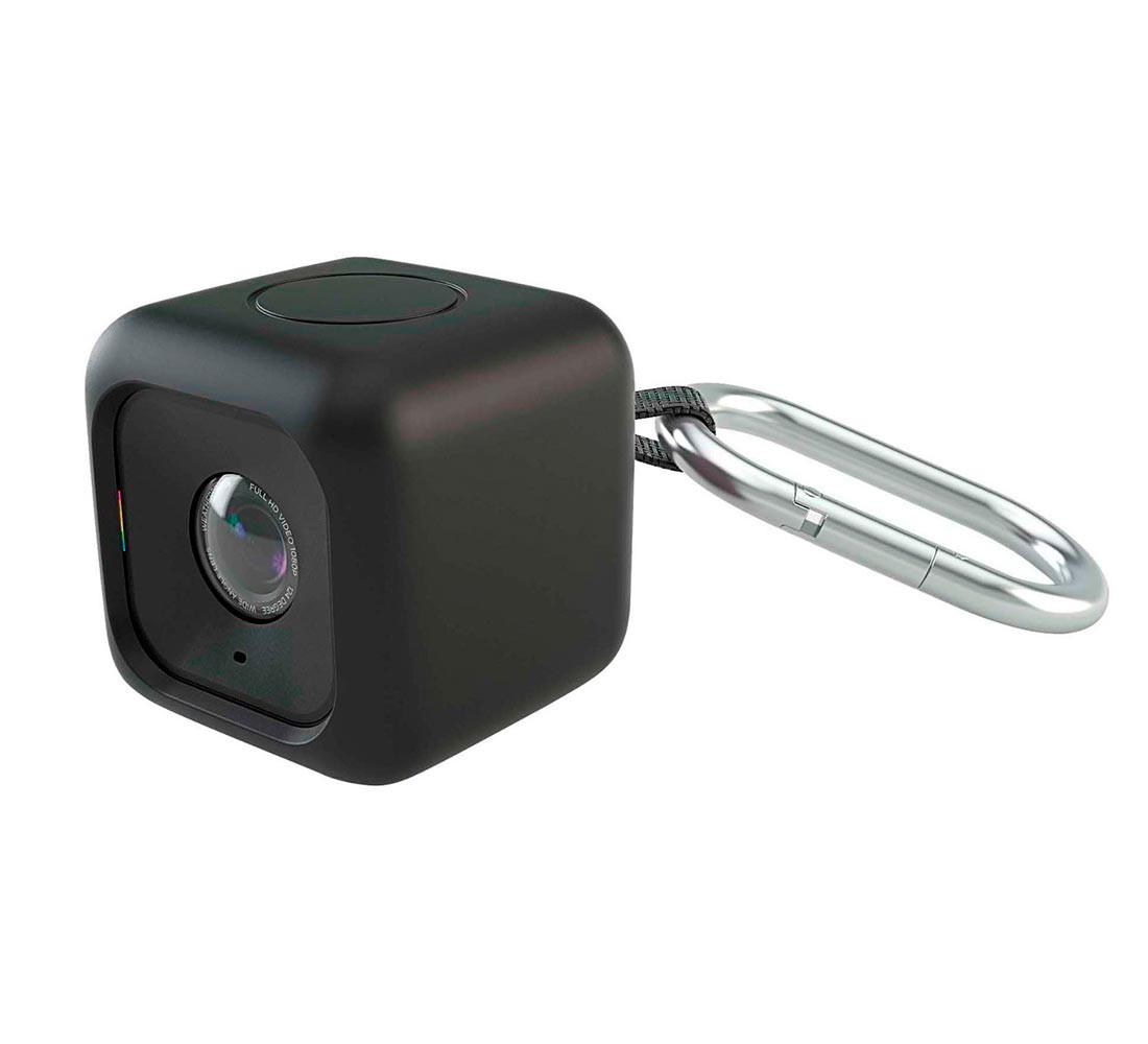 Colgante de silicona con gancho de metal. Lleva colgada tu Polaroid Cube cómodamente en las trabillas del pantalón, en un collar o donde sea que puedas llevar colgada una cámara de acción.