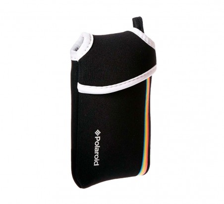 Protege de golpes y arañazos tu cámara Polaroid Snap o Snap Touch con esta práctica y resistente funda de neopreno en color negro y con el inconfundible arcoíris de la mítica marca